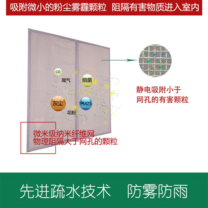 北京上門(mén)安裝防霧霾窗紗,更換防塵防霧霾窗紗網(wǎng),納米靜電防霧霾紗窗能夠正常換氣還有防雨水的特點(diǎn),并有效阻擋花粉、微塵等空氣中的pm2.5顆粒通過(guò),是客戶(hù)們非常中意的窗紗網(wǎng)替代產(chǎn)品。納米防霧霾紗窗