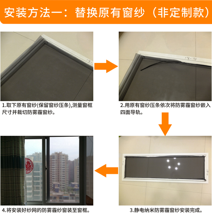 防霧霾窗紗適用各種紗窗換紗網(wǎng),固定紗窗換窗紗,平開(kāi)窗換窗紗。