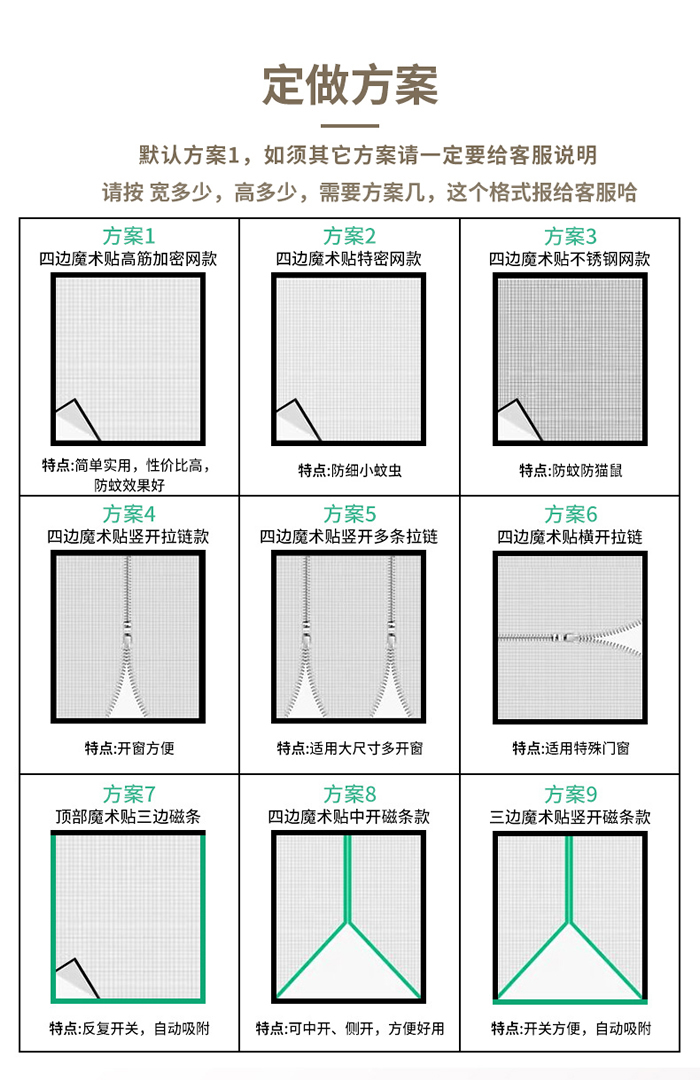 定制魔術(shù)貼紗窗按尺寸算,因此定制前需要和客服溝通。