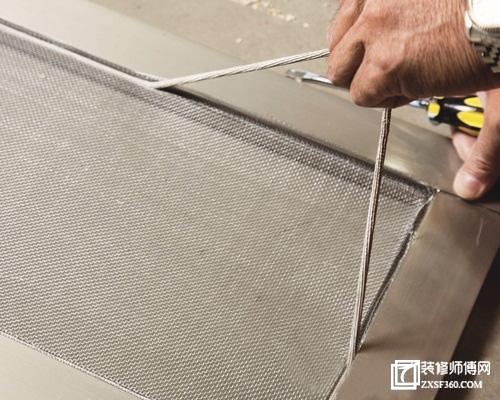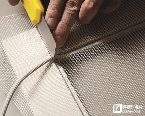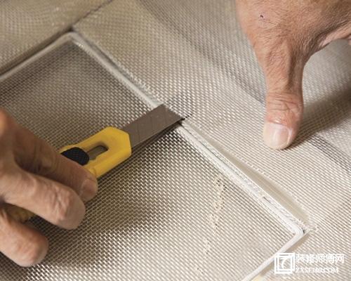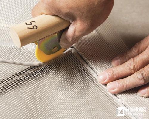 十、用一字改錐將末端壓入固定,然后沿著壓條邊緣,將多余的紗網(wǎng)剪掉就完成了。
