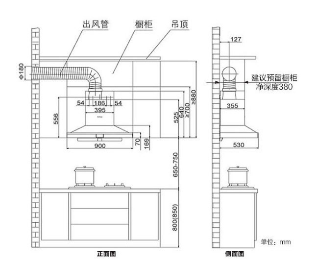 側(cè)吸式油煙機安裝高度標(biāo)準(zhǔn)數(shù)據(jù)